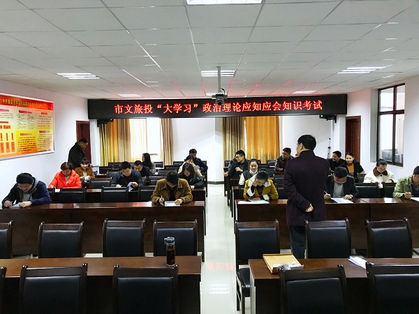 為貫徹落實(shí)習(xí)近平總書記“貫徹落實(shí)黨的十九大精神,在時(shí)代堅(jiān)強(qiáng)和發(fā)展中國(guó)特色社會(huì)主義,要求全黨來(lái)一個(gè)大學(xué)習(xí)”的指示精神,以及市委《關(guān)于深化“大學(xué)習(xí)大調(diào)查大提升大調(diào)研大提升”推動(dòng)黨的十九大精神在婁底落地見效的意見》以及上級(jí)黨委的安排部署,推動(dòng)黨員干部大學(xué)習(xí)。 3月19日上午,婁底市文旅投公司在林業(yè)局5樓會(huì)議室,組織公司全體27名員工參加婁底市“大學(xué)習(xí)”活動(dòng)政治理論應(yīng)知應(yīng)會(huì)知識(shí)考試。 通過(guò)考試形成以考助學(xué),真學(xué)真用的濃厚氛圍,督促?gòu)V大黨員干部以及全體職工學(xué)深悟透黨的十九大精神,自覺(jué)用習(xí)近平新時(shí)代中國(guó)特色社會(huì)主義思想武裝頭腦,指導(dǎo)實(shí)踐,推動(dòng)工作,不斷加強(qiáng)高素質(zhì)專業(yè)干部隊(duì)伍建設(shè)。 |